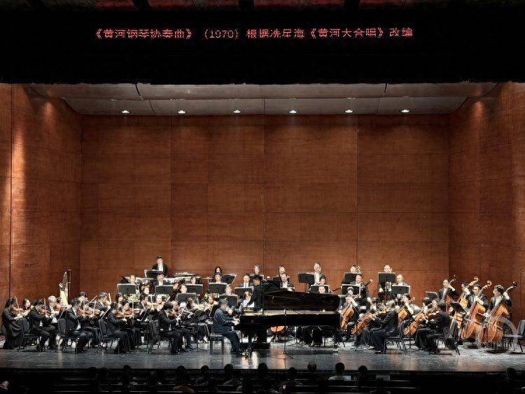 音乐会上半场在贝多芬《艾格蒙特》序曲的庄严旋律中拉开帷幕,随后由殷承宗演奏了格里格《a小调钢琴协奏曲》。下半场,《黄河钢琴协奏曲》2025修订版正式奏响。当钢琴奏出《黄河船夫曲》那激越奋进的主题时,唢呐、竹笛、琵琶等民族乐器的音色次第融入,现场气氛瞬间被点燃。唢呐高亢嘹亮的声音在《保卫黄河》段落中格外夺人心魄,恰如殷承宗此前所言:“唢呐奏响时的民族气节,是西洋乐器无法替代的。”