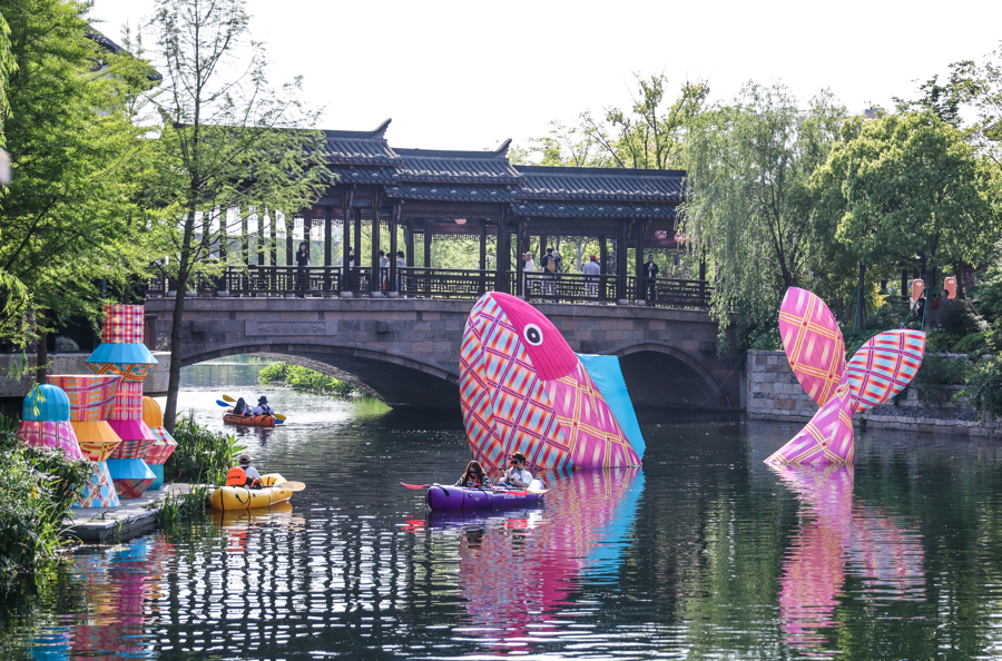 蟠龙新天地再度携手聚焦中国传统手工艺解构与再创的“品物流形PINWU”设计团队。生活在当代江南的国际艺术家Jovana以稻谷、土布、竹编等源自江南水市的传统材料为媒介,在蟠龙新天地水市、香花桥、烟雨廊桥等公共空间创作巨型风物装置。每一处装置都是一段江南故事的当代转译,让漫步其间的游客在艺术中感知江南物候与匠心的温度。