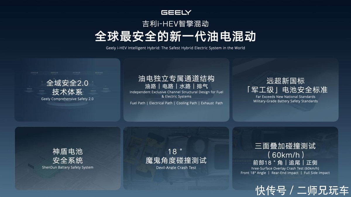 安全,始终是吉利造车的第一优先级。在吉利全域安全2.0技术体系赋能下,i-HEV智擎混动延续了吉利与生俱来的安全基因,从整车开发源头就针对油路、电路、水路与排气规划了独立的专属通道,从结构上实现油电安全保障。