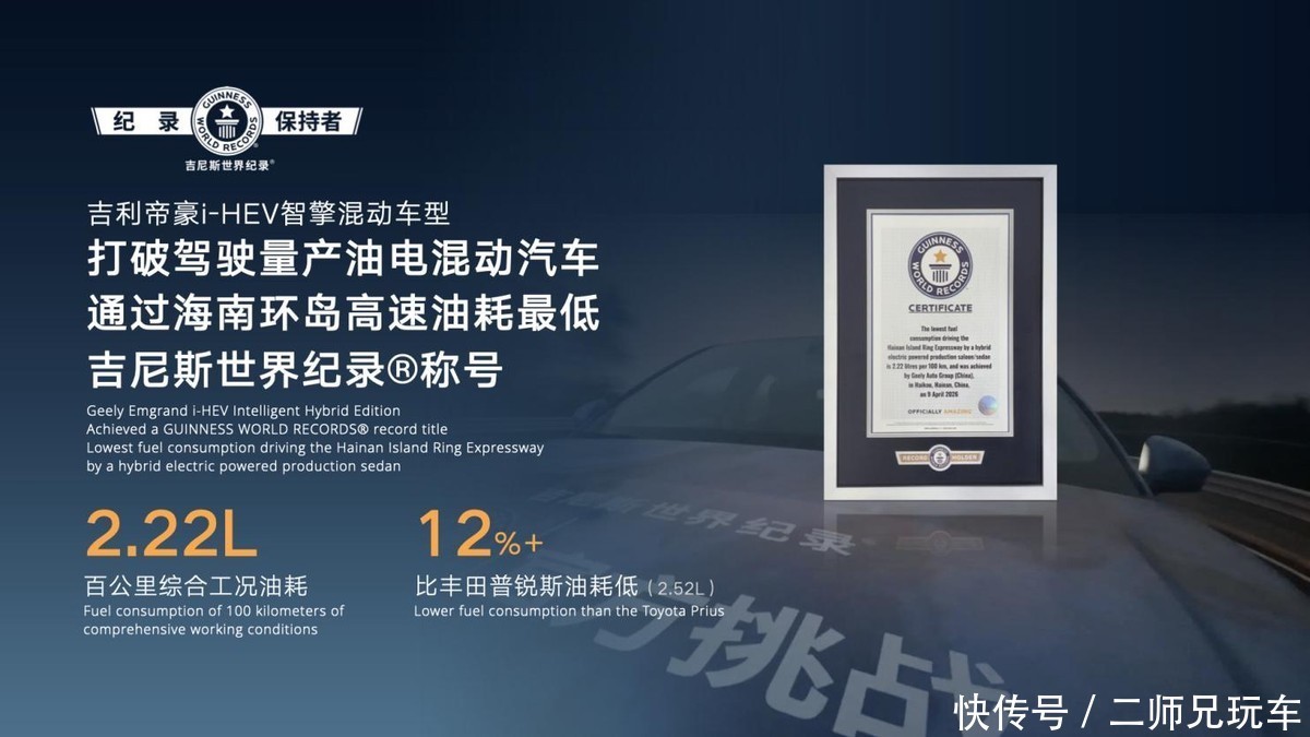 除了追求最高热效率,吉利i-HEV智擎混动还依靠P1+P3电混构型的高功率电驱和60C大倍率混动专用电池,让发动机只在高效区运行。实测显示,吉利第5代帝豪i-HEV智擎混动在海南环岛高速油耗测试中,实测百公里综合油耗仅2.22L,创下全新的吉尼斯世界纪录;尺寸更大、车身更重的星瑞i-HEV智擎混动实测百公里综合油耗也仅2.58L,彻底颠覆传统混动的节能极限。