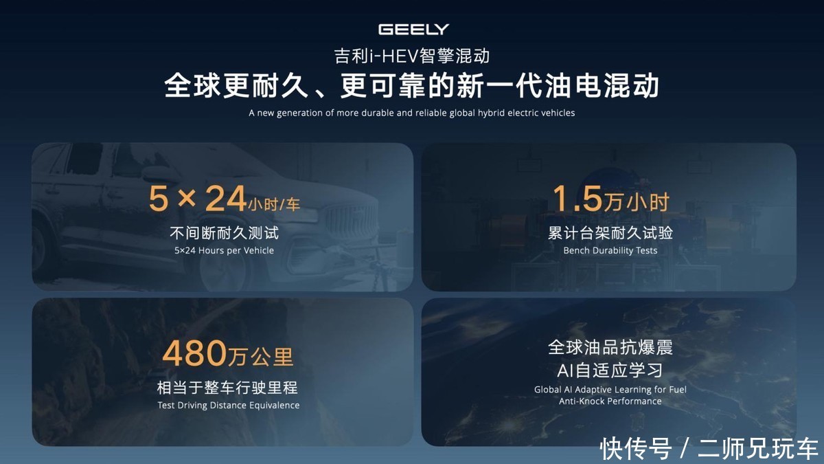 多年来,吉利始终以严苛标准坚守产品可靠性,为全球用户打造更耐久、更可靠的高价值产品,这一理念也同样贯穿i-HEV智擎混动技术的开发全过程。依托全球最极限验证体系,吉利对i-HEV智擎混动累计开展了1.5万小时的台架耐久试验,相当于整车行驶里程约480万公里,比传统混动标准高出20%以上;还通过AI自学习方式,让发动机自适应全球不同油品的抗爆性指标,确保i-HEV智擎混动产品在全球任一地区都能安全高效行驶。